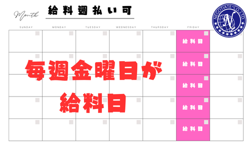 - 週払い・前払い制度あり(規定あり)